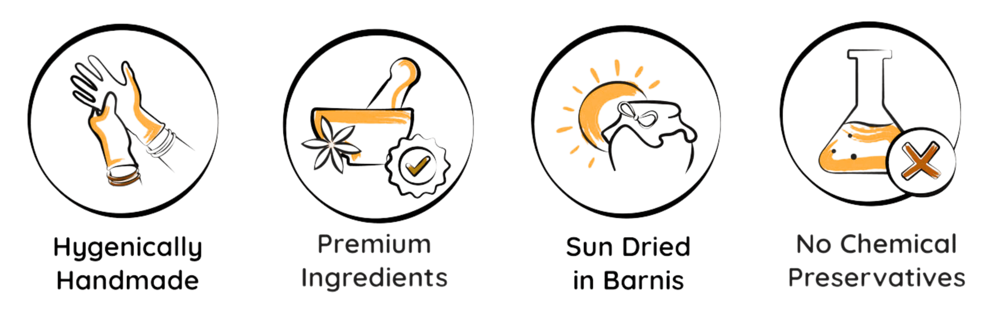 we prioritise food safety above everything. We use high-quality, food-grade specialised plastic jars that are securely sealed to prevent oil leakage or damage during transit. These jars also help retain the natural freshness and aroma of our homemade pickles, ensuring they reach you just the way our Didis prepare them.